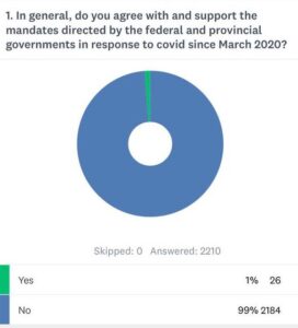 As a result, Police On Guard created an anonymous 24-hour poll and shared it across Canada to gauge the temperature of Canadians on these breaches of our rights and sovereignty.